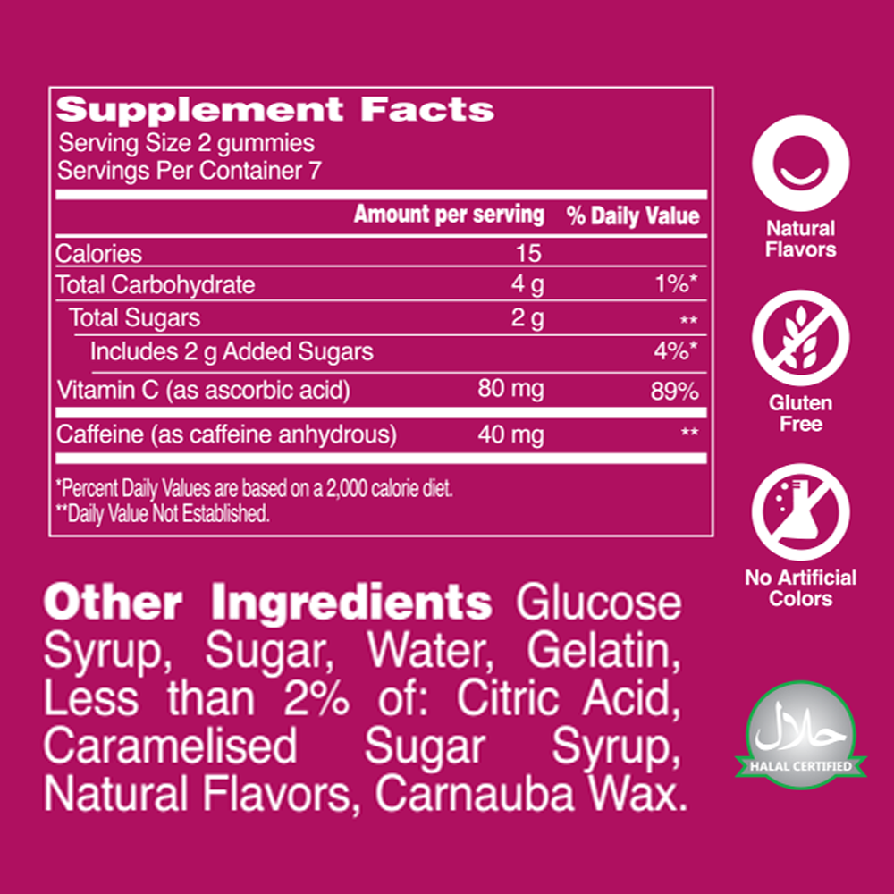- Peak your focusing on your daily tasks by chewing our tasty cherry energy gummies.